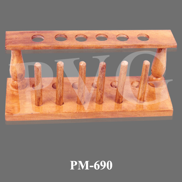• TEST TUBE RACK Test tube rack is the most basic instrument in the Chemistry labs forplacing, drying of test tube , in any chemical reaction observation, in parmaceuticalsof chemical laboratory. PVG’s Wooden Test Tube Rack 6 Holes to Holds 6x25 mm  Test Tubes, Economical, Good Quality,  finished Polished Hardwood or Steam beach Construction for Chemistry Labs. This Six Hole Test tube rack  is supported by two side,strong columns. Stable Test tube rack with or without draining rods. Usefull for placing Boiling Tubes, or in School science Class rooms, or homes .Can be used repeatedly.